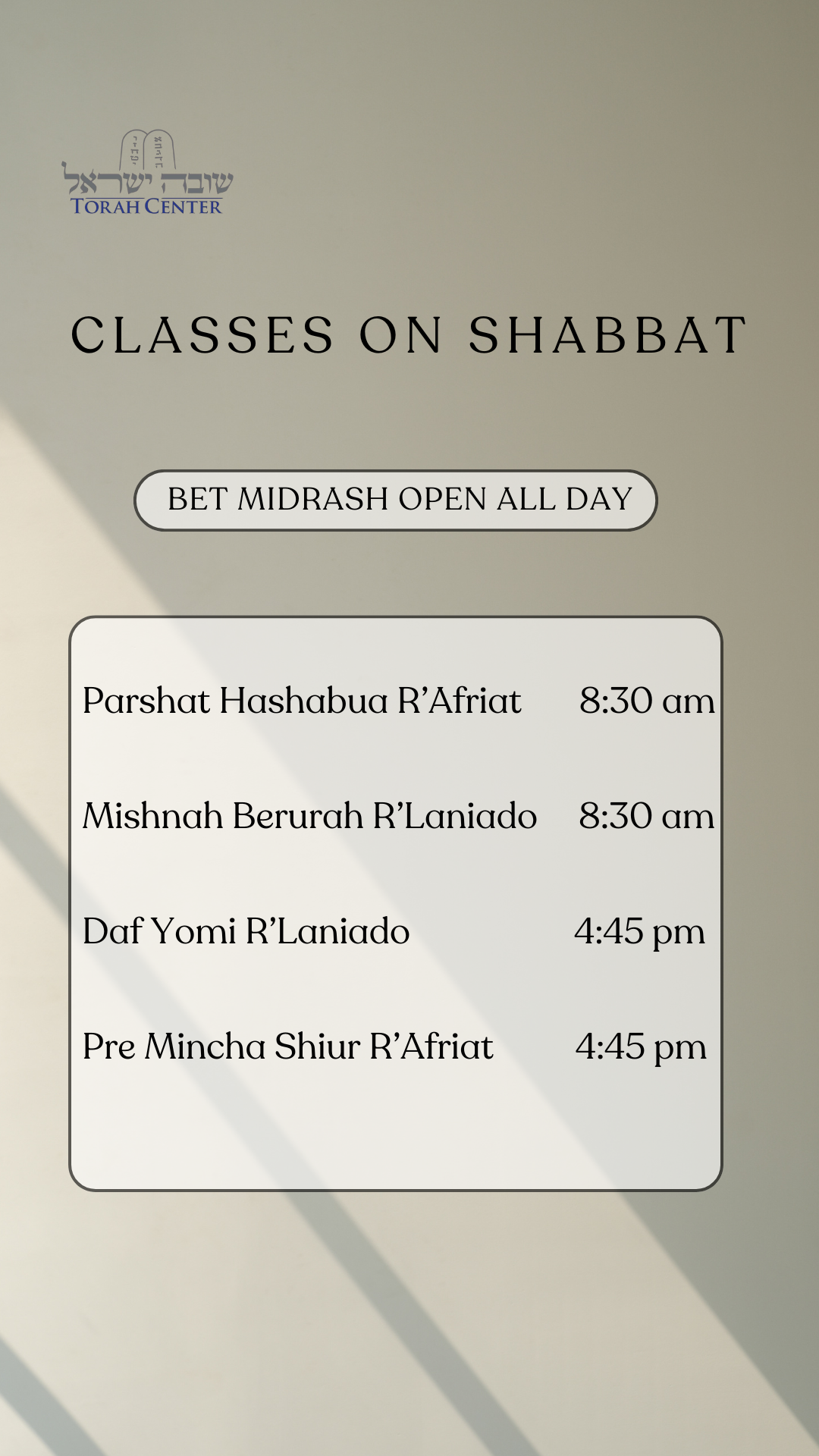 Amod Yomi 5:45 | 7:00 | 8:00 | 9:00 | 9:30 | 10:00