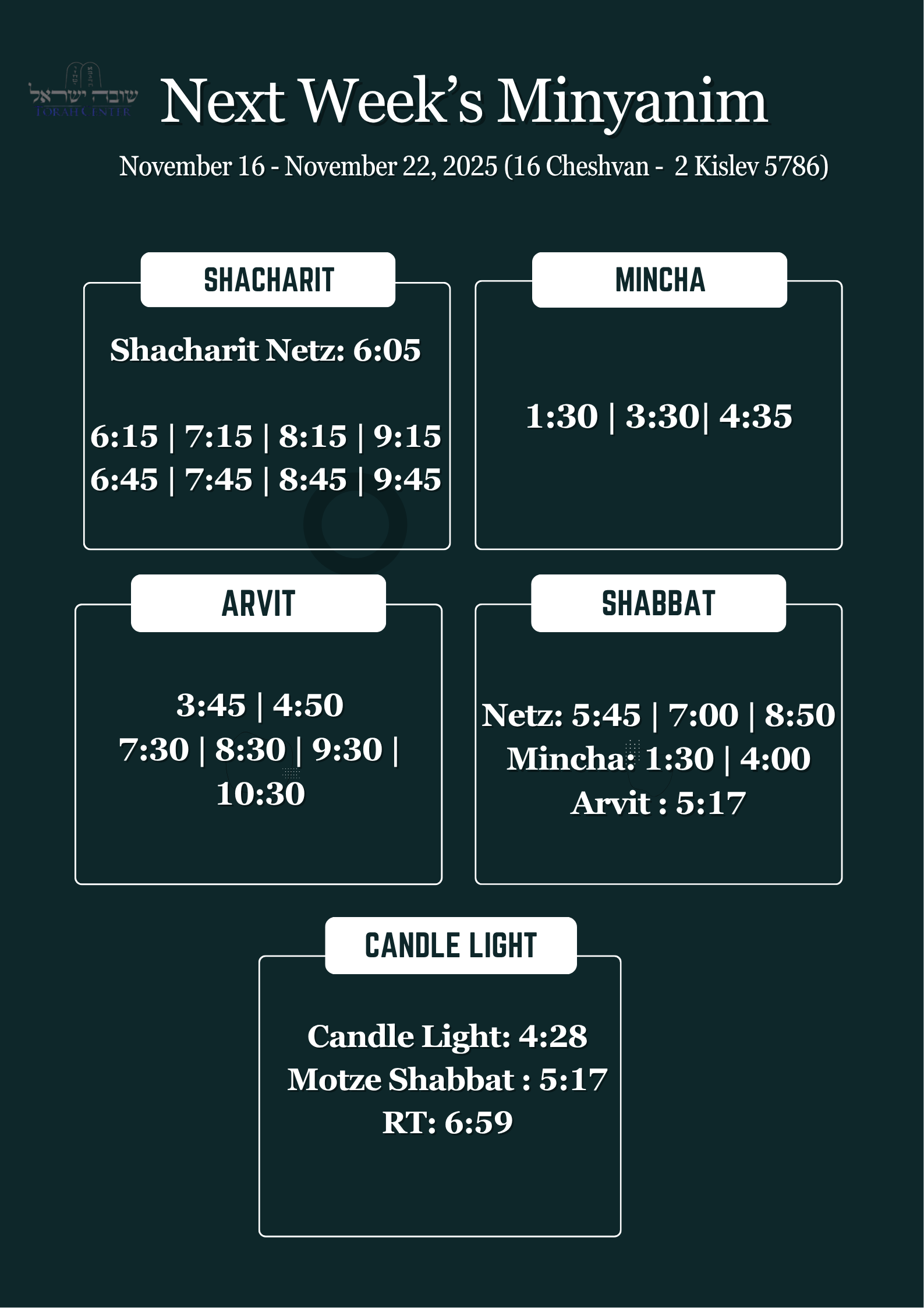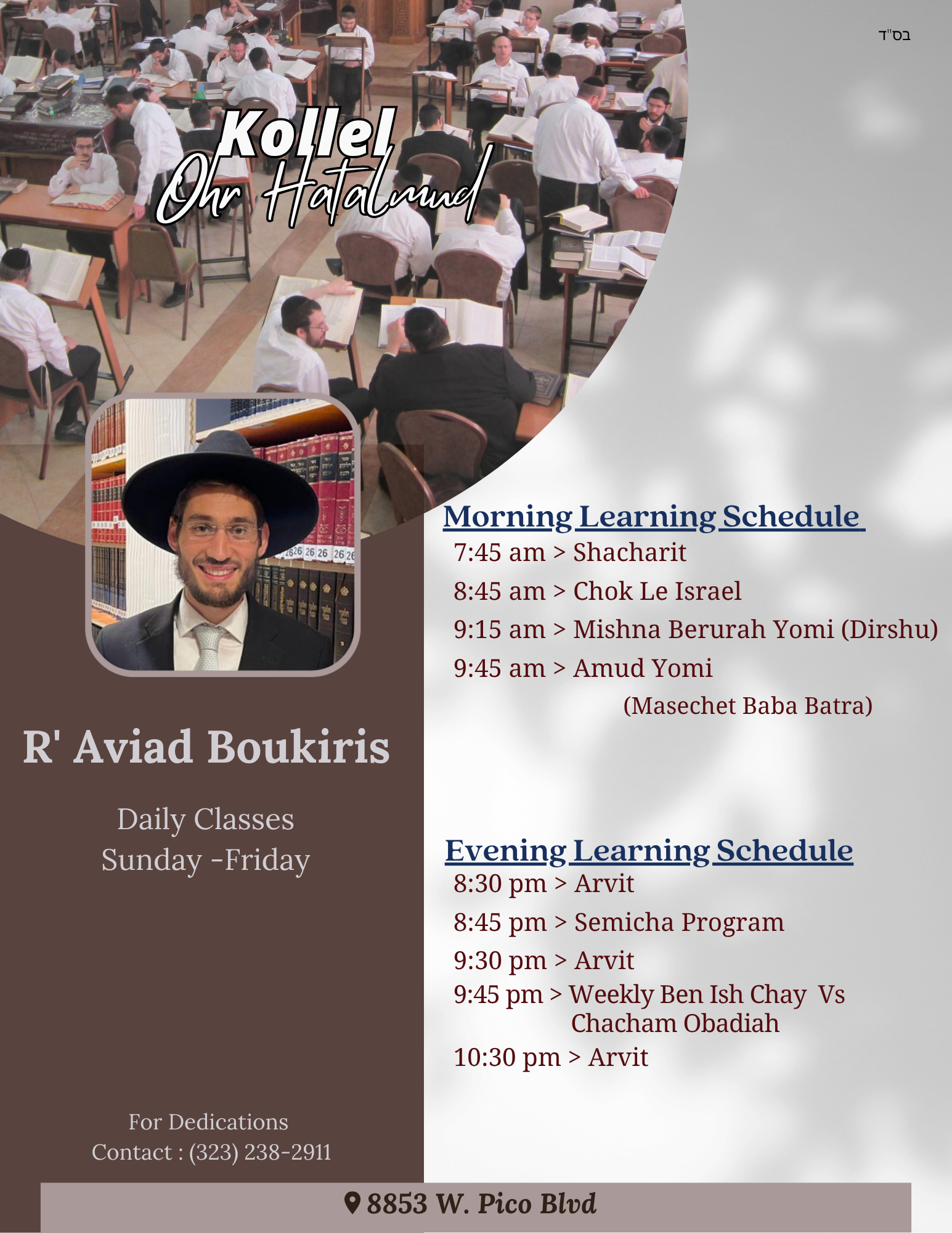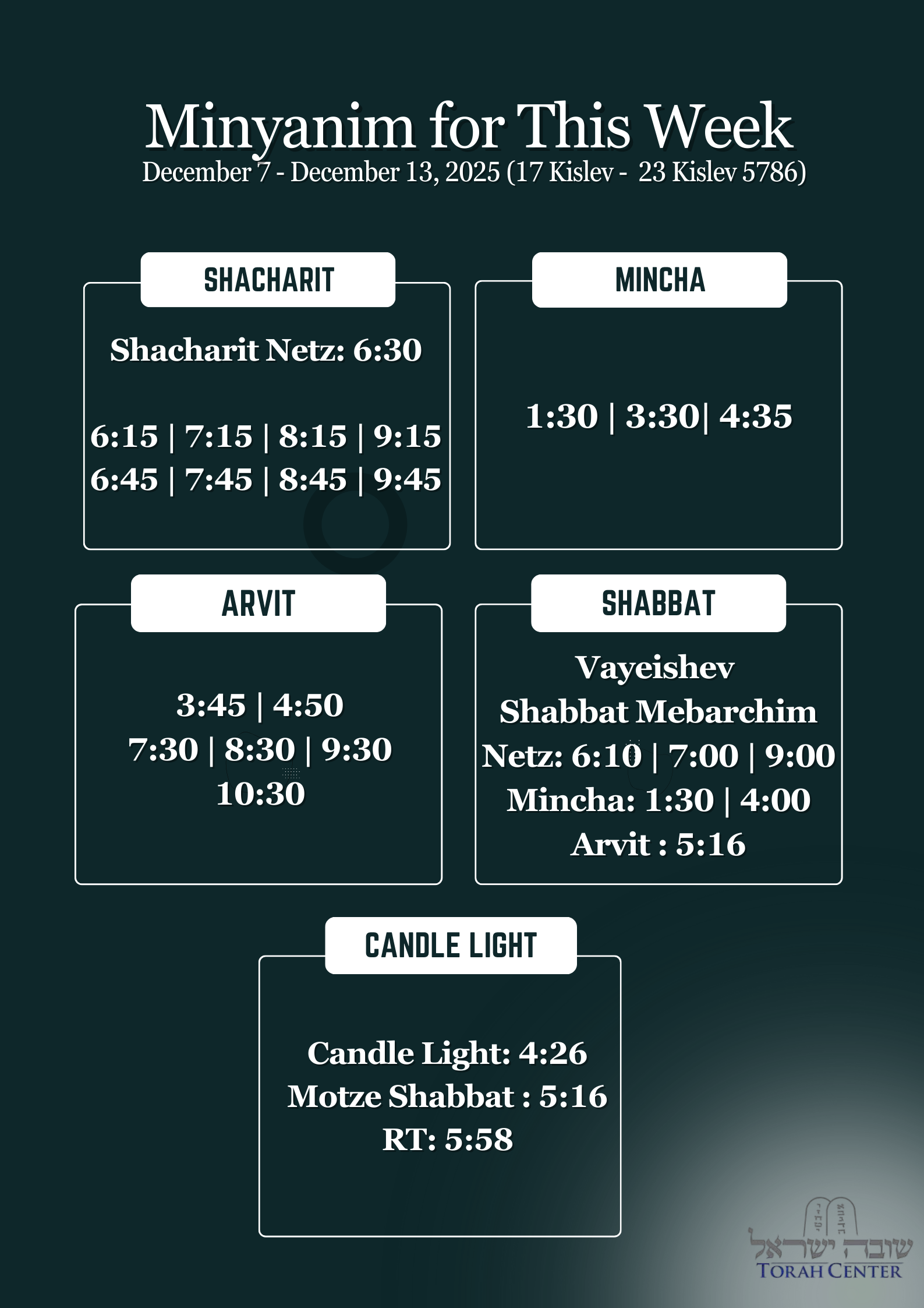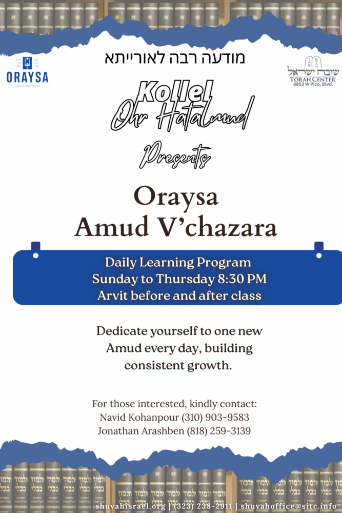 Amod Yomi 5:45 | 7:00 | 8:00 | 9:00 | 9:30 | 10:00