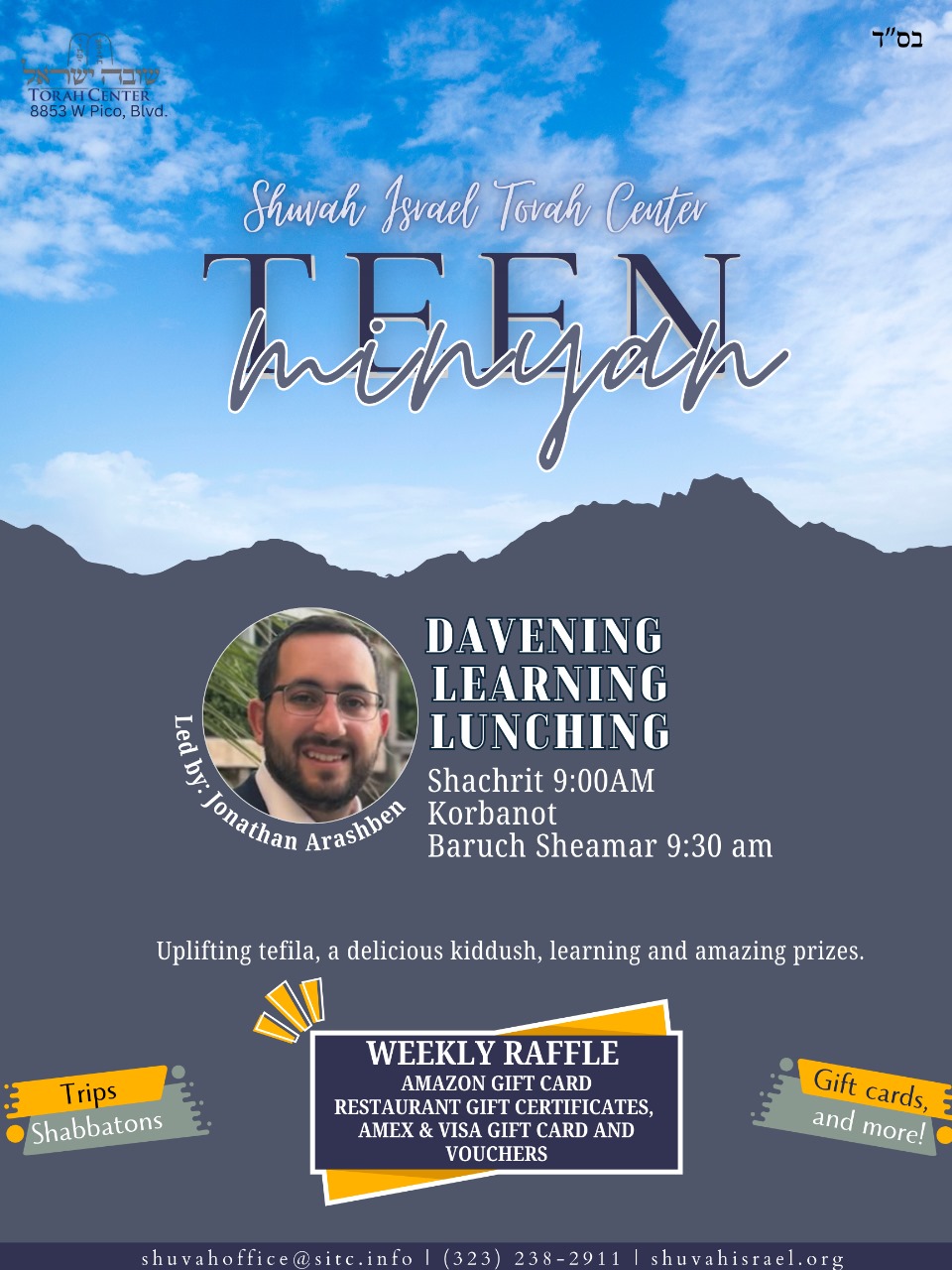 Shacharit: 7:00 (Teens Minian: 8:30)