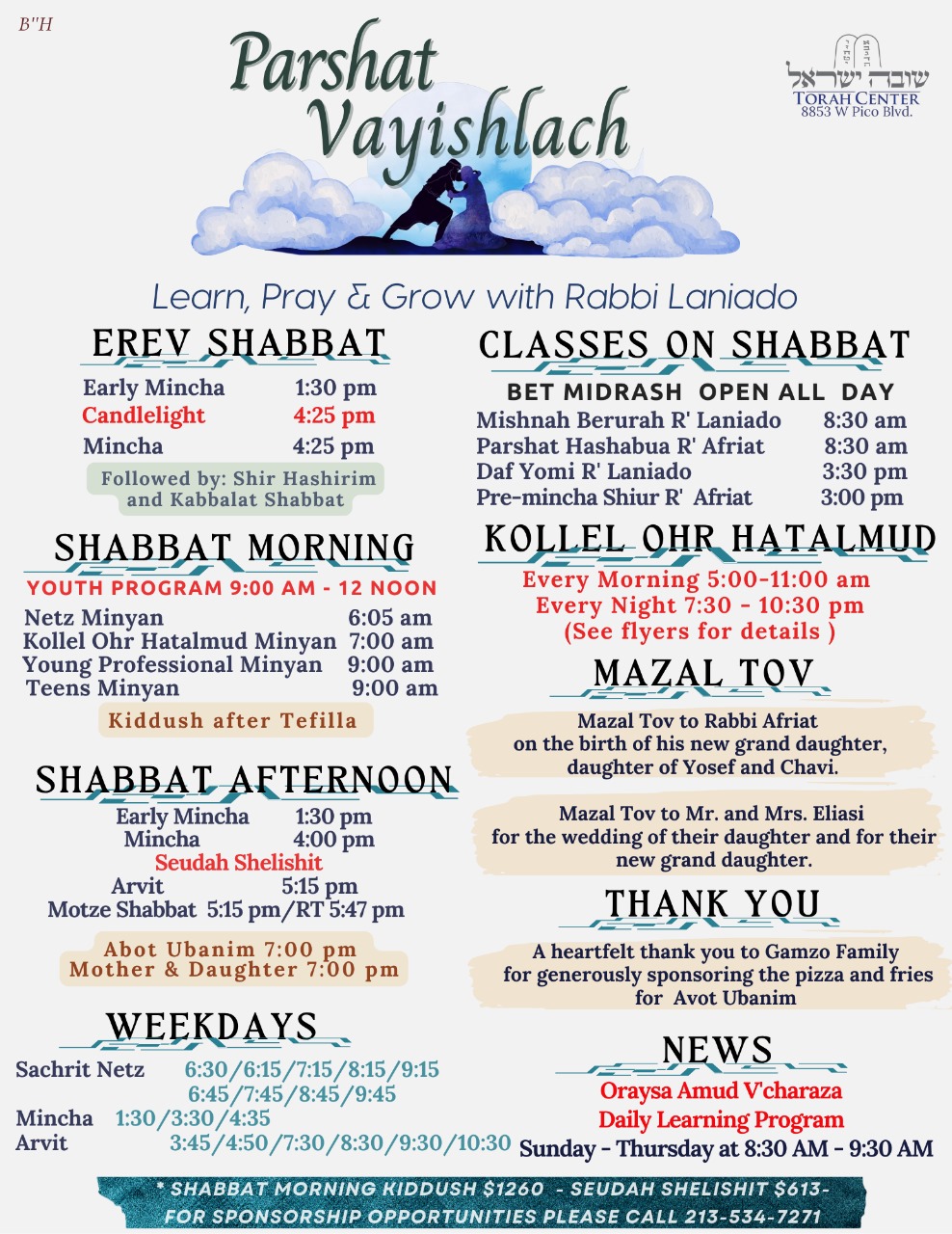 The Shabbos Semich Program (English & Hebrew) 8:00pm
